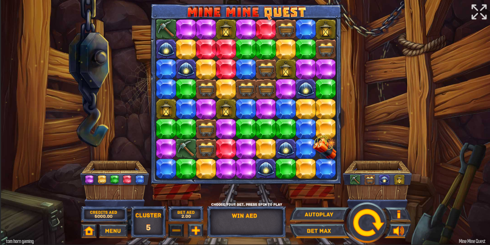 To the disappointment of some, this video slot isn't about cryptocurrency mining. Mine Mine Quest is built around gold mining in deep underground mines. Tom Horn Gaming released the slot that incorporates cluster pay mechanics, which is quite popular among developers nowadays. Five or more identical symbols form a cluster that explodes and reveals the payout.