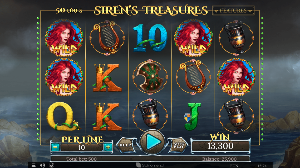 Siren's Treasures by Spinomenal is a five-reel three-line slot machine with many features that will appeal to any player.