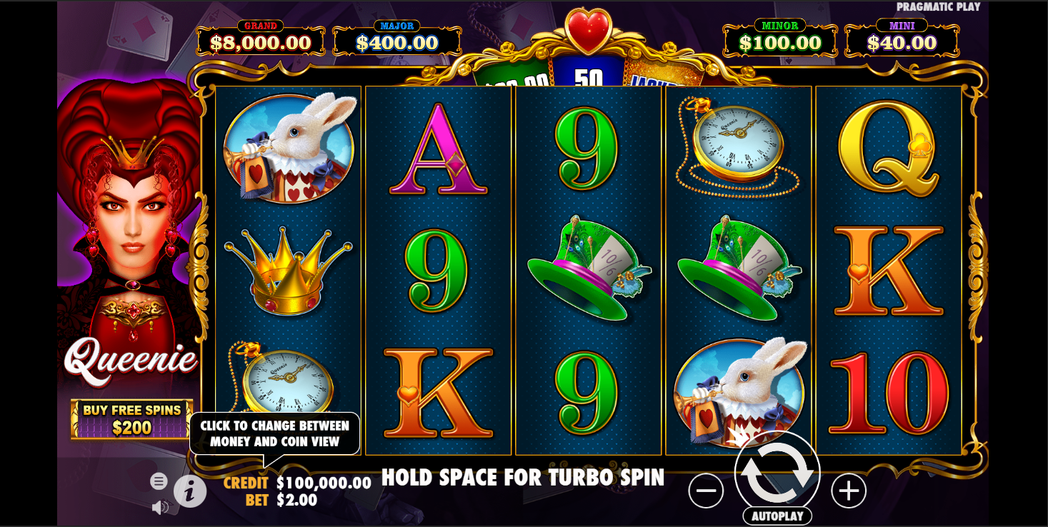 The last on our list of top slots of the week is the one inspired by the famous tale of Alice in Wonderland. But developers at Wild Streak Gaming decided to make this game not about Alice but the story’s main antagonist, the Queen of Hearts, hence the name Queenie. It’s a really good-looking slot with 5 reels and 243 paylines, along with a decent RTP of 95.4%.